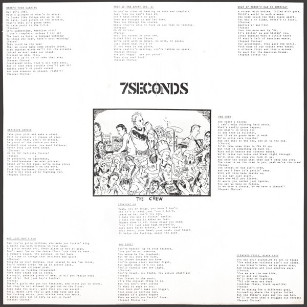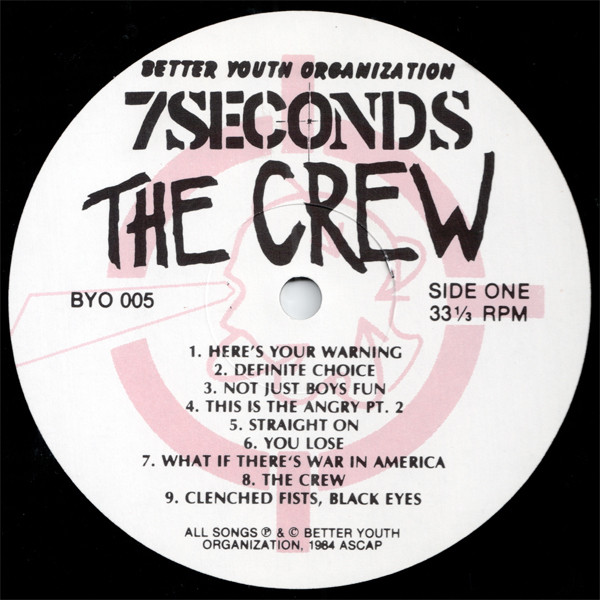 Recorded in December 1983 @ Perspective Sound, CA. Vocals recorded in April 1984 @ Track Record, CA. Mixed in April 1984 @ Track Record, CA. Printed, full-bleed lyric insert included. $5.00 postpaid ($6.00 overseas) All songs ℗ & © Better Youth Organisation, 1984 ASCAP Made in USA. 1984. Matrix info: Lacquer cut at Utopia identifiable by Ʊ "lyre symbol" etched in the runout area of side A displayed as "ƱTOPIA".