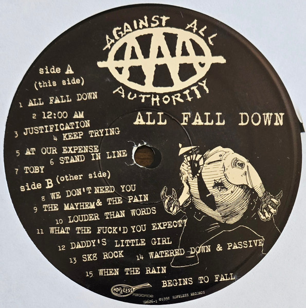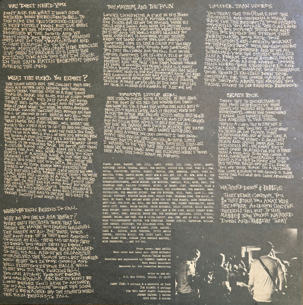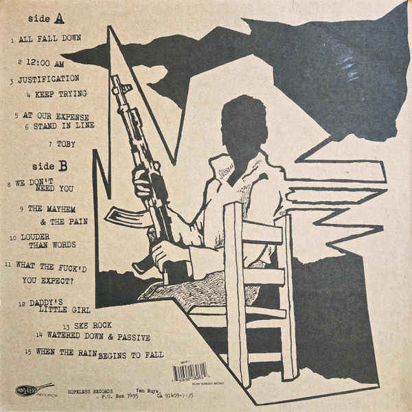 With 2-sided lyrics insert, 11.75" square. May also include a label mailorder insert. Tracks are listed sequentially as they appear on the jacket. Recorded and engineered [...] at West Beach Recorders. Mastered [...] at Oceanview Mastering. © 1998 Hopeless Records