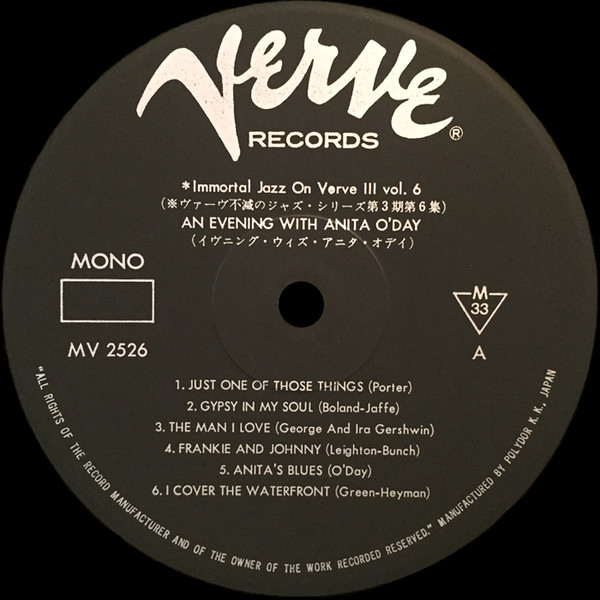 Immortal Jazz On Verve III vol. 6. Comes with insert (lyric sheet) in Japanese and English. A1-A6, B5-B6: Recorded April, 1954 In Los Angeles. B1-B4: Recorded February, 1955 In Los Angeles.