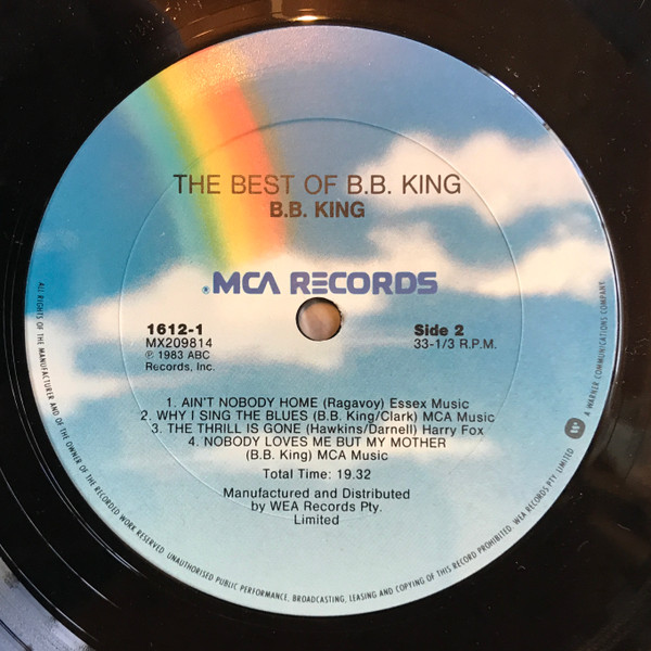 This album was assembled and remastered at The Village Recorder, Los Angeles by Ed Michel and Baker Bigsby, with the assistance of Kathryn King, Dominic Lumetta, Rob Fraboni, Ken Klinger and Gil Fortis. Throughout, the tracks were recorded and mixed to have their most profound effect at maximum volume. Ⓟ 1972 / 1973 by ABC Records Inc. A1 recorded at The Record Plant, Los Angeles, May and June 1970. A3 recorded at performance at Cook County Jail, Chicago, Ill., September, 10, 1970. Location recording by Location Recorders, Inc. A4 recorded at Olympic Studios, London, and The Village Recorder, Los Angeles, June, 1971. At the request of a participating artist, this is a shortened version of the master originally released. A5 recorded March, 22, 1971, at The Record Plant, Los Angeles. B1 recorded at Command Studios, London and The Hit Factory, New York, June, 1971. B2 recorded at The Hit Factory, New York, 1969. B3 recorded at performance at Cook County Jail, Chicago, lll, September, 10, 1970. B4 recorded at The Record Plant, Los Angeles. ℗1983 ABC Records, Inc Timings on labels (above) differ from those on the back cover: Side A 1. 4:33 2. :37 3. 5:09 4. 3:20 5. 7:01 Side B 1. 3:37 2. 8:39 3. 5:30 4. 2:0x Side B track 4 has a locked groove with some sounds that play infinitely. Manufactured and Distributed by WEA Records Pty Limited