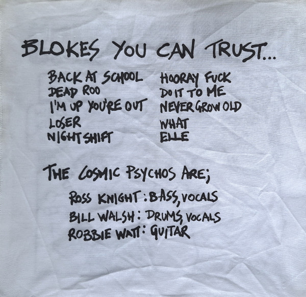 Cover is signed by all 3 members. Cover is slightly bent and minor corner dings. The slip case has a mild stain on it.