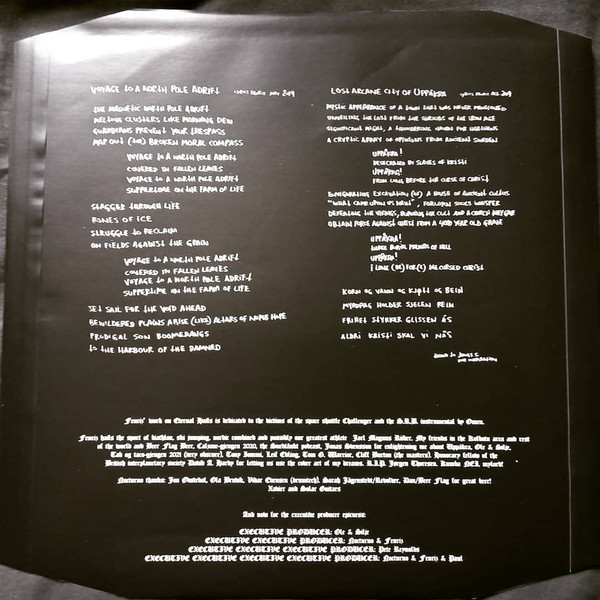 [Hype sticker:] "Five heavy dinosaurs looking in wonder and bewilderment at the stars." Issued with a double-sided printed insert with lyrics. [Back cover:] Epic black heavy metal ℗ 2021 Peaceville Records © 2021 Peaceville Records Made in the EU.