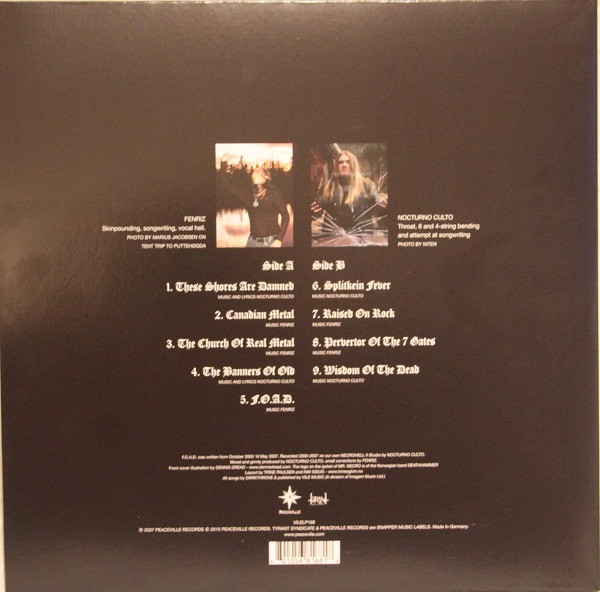Gatefold sleeve, comes with poster Written from October 2005 'till May 2007. Recorded 2006-2007 on our own Necrohell II Studio by Nocturno Culto. All songs published by Vile Music (A division of Imagem Music Ltd.) ℗ 2007 Peaceville Records © 2015 Peaceville Records Made in Germany Total running time: 40:23