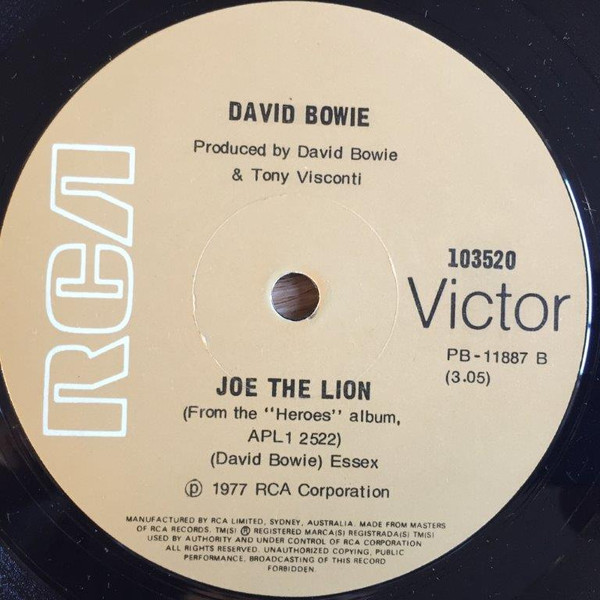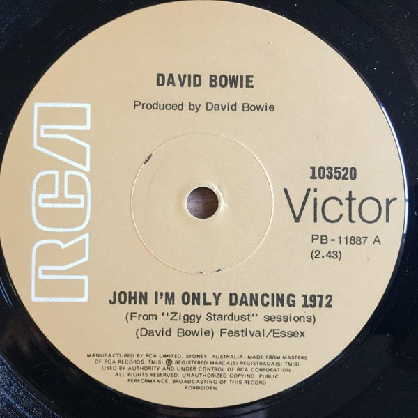 Released in a generic RCA company sleeve. On labels: From "Ziggy Stardust" sessions Publishers: A-side: Festival/Essex B-side: Essex Manufactured by RCA Limited, Sydney, Australia. Made from masters of RCA Records. TM(S) ® Registered marca(s) registrada(s) TM(S) used by authority and under control of RCA Corporation. Runouts are etched.
