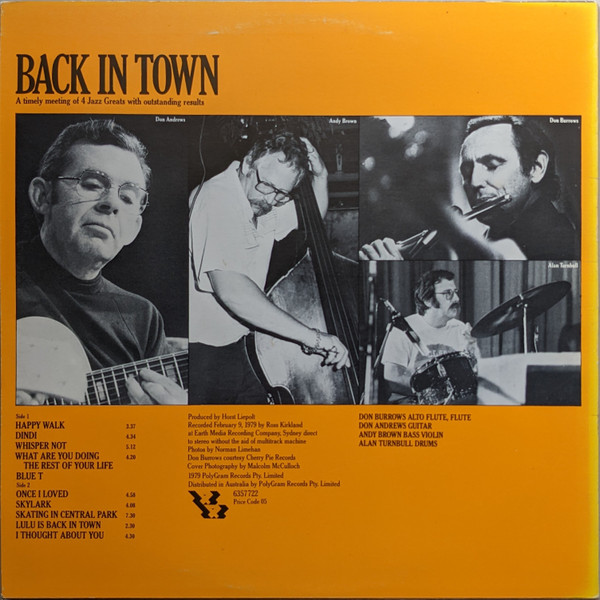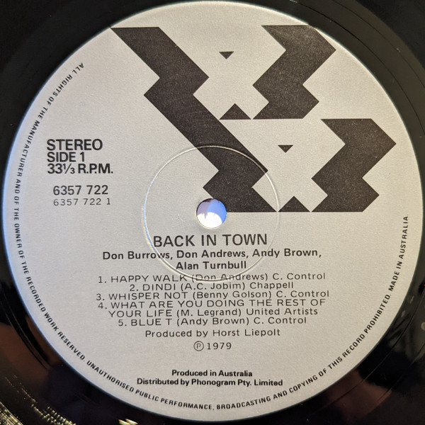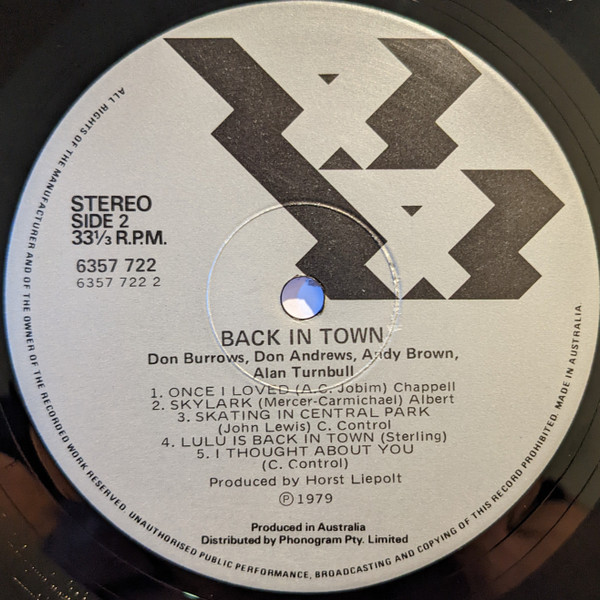 Catalog Number "6357722" appears on the back cover, "6357 722" appears on the spine and labels. Recorded February 9, 1979 by Ross Kirkland at Earth Media Recording Company, Sydney direct to stereo without the aid of multitrack machine.