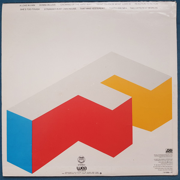 Red text on white sticker on front: "INCLUDES I WANT TO KNOW WHAT LOVE IS 81999-1
