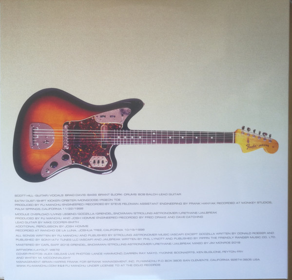 Limited to 2000 copies A1 to B2 recorded at Monkey Studio, Palm Springs, California, 11/22/1998 C1 to F2 recorded at Rancho de la Luna, Joshua Tree, California, 10/19/1996 Live photos - Lance Hammond, Darren Ray Mayo, Yvonne Boonaerts, Ken Buglione, Peyton Fry and Whitey McConnaught In 2018, Scott Hill (vocals/guitar) found the original tapes from the Godzilla recording sessions produced by Josh Homme (Queens Of The Stone Age/Kyuss) in his garage since 1996.The band had recorded 4 new songs that had never been released.