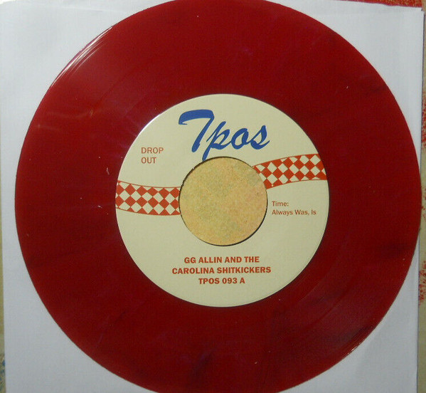 Tracks A1 & A2 recorded 6/17/93 at Clayton Manor by the Lazy Dog Mobile Unit.This was GG Allin's final recording session, made one week before he died. Side B was recorded 2/12/92 at Lazy Dog Studios. Pressing of 1000 copies. Random mixed color was used by the pressing plant and the colors break down as follows: -160 copies on orange vinyl -35 copies on "band aid" pink vinyl -157 copies on purple vinyl -166 copies on red vinyl -335 copies on "Carolina swamp" green vinyl -219 copies on regular green vinyl (this) -2 copies on "actually nice" blue vinyl Since the pressing plant used random mixed vinyl, the shades of each color vary widely. Initially it was thought that only 16 copies on "band aid" pink vinyl were made. The actual number is 35. Each copy bears an official TPOS sticker, a few of which state the erroneous total of 16 copies. Orange copies were available only via mail order directly from ANTiSEEN.