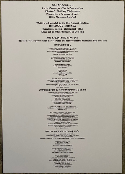Limited to 200 copies. Includes a professionally printed, matte finish, double-sided, A4-size insert. "Written and recorded in the Black Forest Studios, MMXVIII - MMXIX"