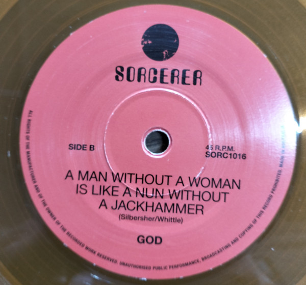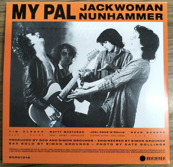 Limited edition of 1000 copies on orange translucent vinyl. Comes with 15cm x 17cm B&W promo photo. Track B appears as "A Man Without A Woman Is Like A Nun Without A Jackhammer" on the Side B vinyl label and as "Jackwoman Nunhammer" on the rear sleeve [Rear Sleeve:] "Originally released on the [l14106] label (ANDA65) in 1988. This edition licensed exclusively by [l1381742] from the almighty [a563192] in a pressing run of 1000 copies. ℗ & © [l1381742] 2025." Runouts are etched.