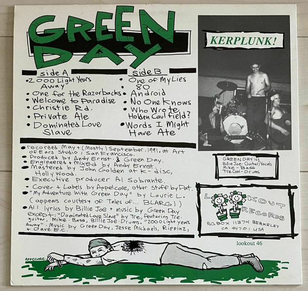Two pressing rings on the record labels.[r706134] has only one. Recorded May + (mostly) September 1991 at Art Of Ears Studio, San Francisco, CA. Mastered at K-Disc, Hollywood, CA. Includes double-sided lyric insert, and a printed inner-sleeve with a selection of Lookout! LPs on one side and 7" singles on the other. (Records advertised on the inner-sleeve date this repress to at least 1996)