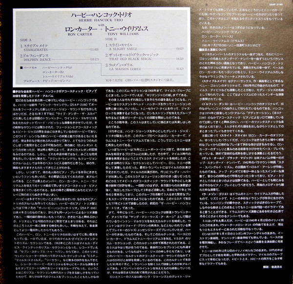 Recorded at CBS/Sony Shinanomachi Studio, Tokyo, Japan on July 27, 1981 by Sony PCM-1600 Digital Recording System Ⓒ 1981 CBS/Sony Inc. / Ⓟ 1981 CBS/Sony Inc. Manufactured and distributed by CBS/Sony Inc. (Tokyo Japan) (KP)