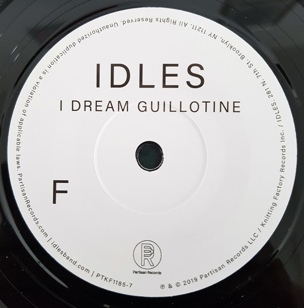 Hype sticker over shrinkwrap reads ; IDLES A: Mercedes Marxist F: I Dream Guillotine Two unreleased tracks from 2018's critically acclaimed album [m=1414653] Disc is labelled as sides A (Mercedes Marxist) and F (I Dream Guillotine), in keeping with other IDLES vinyl releases