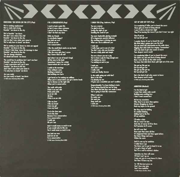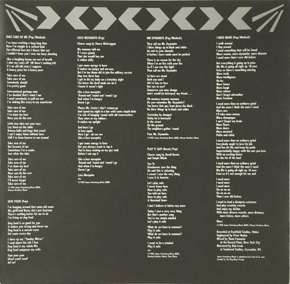 Originally issued as Arista Album AB 4259, 1980. Mastered at Sundazed Studios, Coxsackie, NY. Another James Osterberg Production