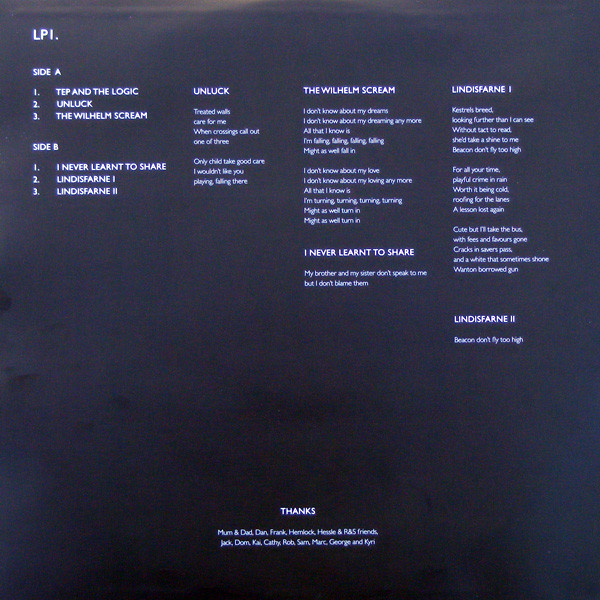 All tracks written, performed, produced and recorded at Home by James Blake. Published by Universal Music Publishing Ltd. Except LP1 SIDE B3 written, performed, produced and recorded at Home by James Blake & Rob McAndrews. Published by Universal Music Publishing Ltd / Copyright Control. And LP2 SIDE A1 written by Feist / Jason 'Gonzales' Charles Beck. Published by Delabel Editions / EMI Music Publishing Ltd. / Universal Music Publishing MGB Ltd. ℗ 2011 Polydor Ltd (UK) © 2011 Polydor Ltd (UK). The copyright in this sound recording is owned by Polydor Ltd (UK), A Universal Music Company. Made in the EU.BIEM / SDRM. LC00485. Release includes a coupon with a code for free downloading of a digital version of the album. Lyrics printed on record sleeves. The tracks "Tep And The Logic" and "You Know Your Youth" are exclusive only to the vinyl LP edition of this album. Durations taken from mp3s.