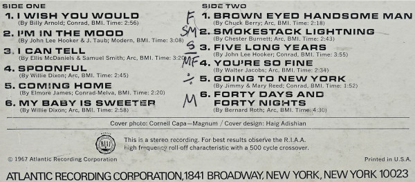 Blue and Green Atlantic label. © 1967 Atlantic Recording Corporation A1, B3, B5; Conrad, BMI A2; Modern, BMI A3, A4, A6, B1, B2, B4, B6; Arc, BMI A4; Conrad-Melva, BMI Credits are taken from the liner notes.