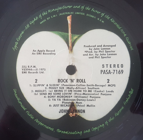 Original release on Apple. This variation does NOT feature the solid dot at the left of the manufacturing credit on side 2.