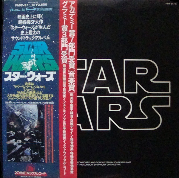 16 track LP with glossy gatefold cover. Blue and red obi strip. 50th Academy awards commemorative edition released after 1978. With 4-page insert showing record notes in Japanese and black and white photos & includes color poster. Large dual color ( Blue/Red) obi, showing the price of 3,600 Yen.