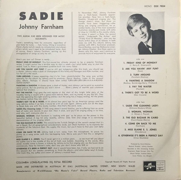 Made by E.M.I. Music (Australia) Limited, Sydney, N.S.W.