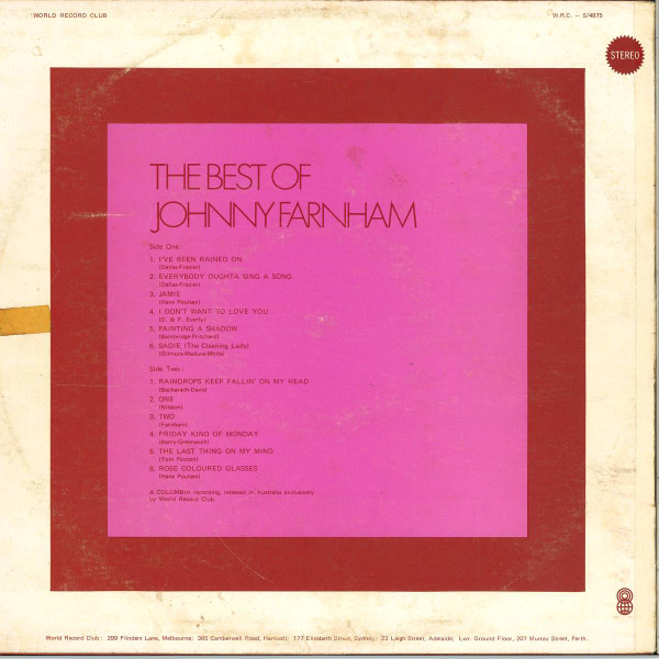 "A COLUMBIA recording, released exclusively in Australia by World Record Club." WRC 3rd pressing, on blue 'herald' labels. "S/4875" on sleeve, "S-4875" on labels. Same sleeve design and addresses as 1st pressing. Short/square header font on labels, with rest of text bold non-italic - the 1972 style. Also reissued on cassette at the same time. World Record Club: 299 Flinders Lane, Melbourne 365 Camberwell Road, Hartwell 177 Elizabeth Street, Sydney 23 Leigh Street, Adelaide Lwr. Ground Floor, 207 Murray Street, Perth