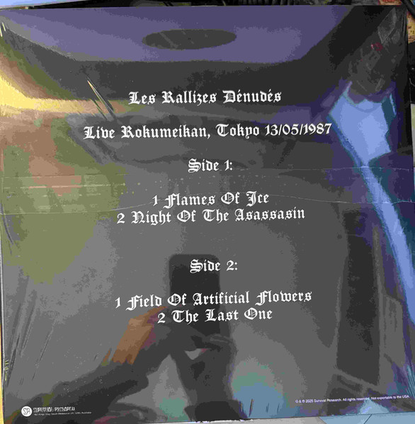 Live Rokumeikan, Tokyo 13/05/1987. The recording was previously released on the [r=1563177] 2CD set. Green hype sticker on cover with barcode. The venue is misspelled as Kokumeikan on the sticker.