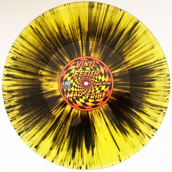 Mad Tribe - Vinyl Fetish In the astonishing realism of 3-Dimensions 45 RPM Vinyl on flourescent yellow with black splatters & Holographic sleeve. Side A - Vinyl Fetish 148 BPM Side B - Living Stereo 146 BPM Mad Tribe - Indulging your fetish for Vinyl No animals were harmed during the making of this record Limited Edition of 300