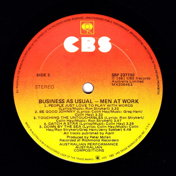 All tracks published by April. Sound recording made by CBS Records Australia Limited – first published ℗ in Australia 1981. © 1981 CBS Records Australia Limited. ℗ 1981 CBS Records Australia Limited.