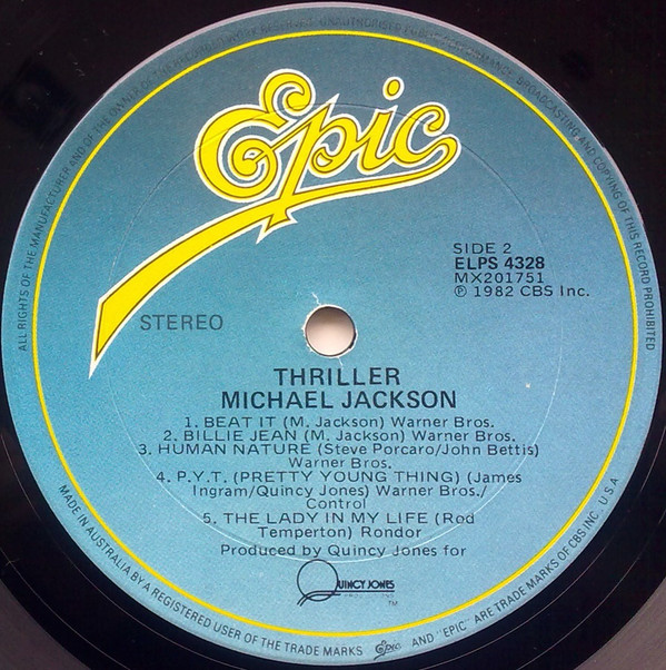 2nd pressing with Jackson credited at rear of sleeve (directly under Quincy Jones credit) as Co-Producer.