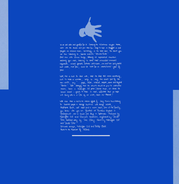 Released in an outer sleeve, with a 29.5 x 29.5cm insert sheet with lyrics on one side and credits and rave on the other. Outer sleeve fits into a beige-coloured plastic sleeve (see images) with clear spaces on front and rear sides: the clear space on one side is in the shape of the "Sprint" logo (the outspread hand); the clear spaces on the other side are in the shape of smears that expose (when the outer sleeve is fitted correctly) the head of the stuffed kangaroo, and the target in the upper right corner of the cover. Outer sleeve: ℗ 1985 Midnight Oil © 1985 Midnight Oil Sound recording made by Midnight Oil-First published ℗ in Australia 1985 [CBS logo] and CBS are trade marks of CBS Inc., U.S.A. Made in Australia by CBS Records Australia Limited Insert sheet: Recorded at Paradise Studios in Darlinghurst, over a quick five days in September (1985). © 1985 Sprint Music, register APRA, administered by Warner Bros. Labels: All compositions Sprint Music administered by Warner Bros. ℗ & © Midnight Oil 1985. Made in Australia by a registered user of the trade marks [CBS logo] and "CBS" are trade marks of CBS Inc U S A Runouts are etched.