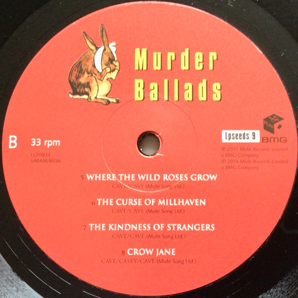Sides A to C contain music, side D is blank. Track numbers are listed sequentially regardless of side. From front sticker on shrink wrap: Includes download code Contains download card for [url=http://www.discogs.com/release/8065277]FLAC[/url] or [url=http://www.discogs.com/release/8065337]MP3[/url] files. Issued with plain white paper inner sleeves. Recorded in 1993-95 at Atlantis, Sing Sing and Metropolis Studios, Melbourne, Wessex Studios, London and mixed at Metropolis. "Where The Wild Roses Grow" was mixed at Sarm West, London. Mastered at Whitfield Street ℗ 2011 Mute Records Ltd, a BMG Company © 2014 Mute Records Ltd, a BMG Company Runouts are etched