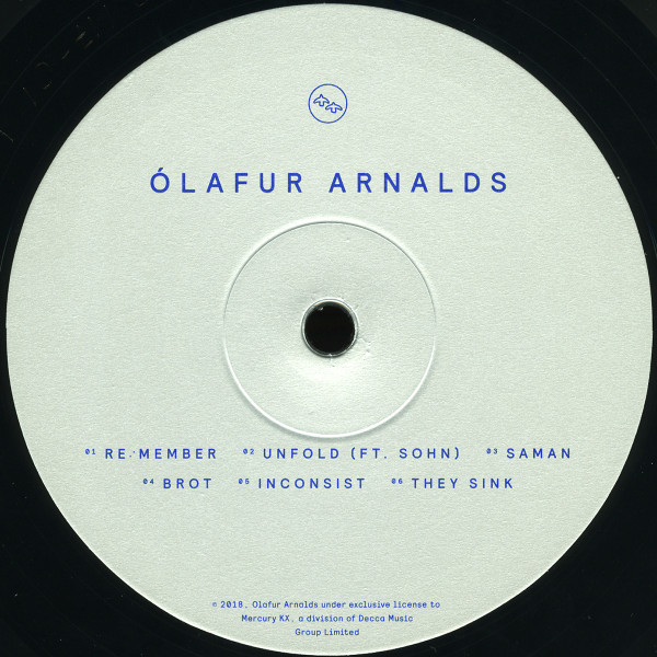 12"-square 8-page staple-bound booklet Poly-lined inner sleeve Sequential track positions on sleeve & labels Etched matrices SOHN appears courtesy of 4AD ℗ 2018, Ólafur Arnalds under exclusive license to Mercury KX, a division of Decca Music Group Limited © 2018, Mercury KX, a division of Decca Music Group Limited. Universal International Music B.V. Made in the EU.