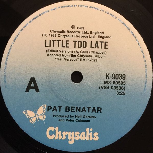 Taken from the Chrysalis Lp: "Get Nervous" RML52023. Released in a Festival company sleeve