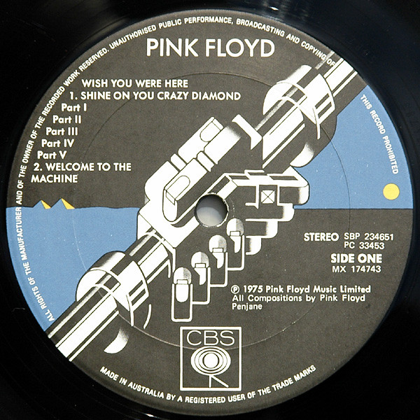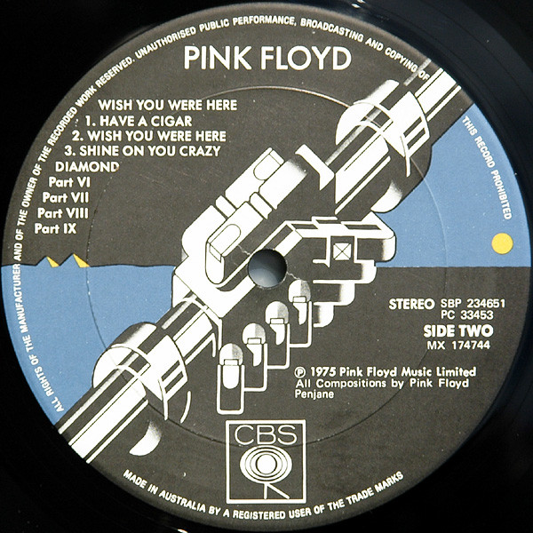 This version is similar but different to other Australian releases as noted below. Side A groove matrix looks like it used to be MX174753 stamped but the 5 has been over written and replaced with a hand scratched 4. Catalog # are displayed as follows: SBP 234651 on front cover and spine. SBP 234651 and PC 33453 on inside of gatefold and on labels (see images) Unable to determine for sure if this is a 1975 1st issue or not but seems to correct according to http://www.pinkfloydarchives.com/DAuLPPF.htm#WYWH1 Postcard included with this release