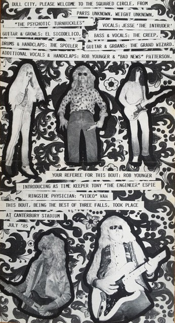 Recording notes from sleeve: "This bout, being the best of three falls, took place at Canterbury Stadium, July '85." Etched into AA side: WILD SCENES IN ALBERQUERQUE! With double sided fold-out insert.