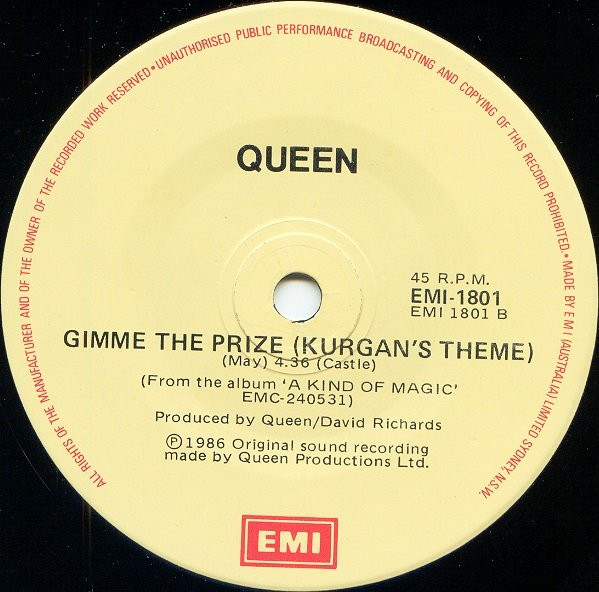 From the Album 'A Kind Of Magic' EMC 240531 ℗ 1986 Original sound recording made by Queen Productions Ltd. Made by EMI (Australia) Limited Sydney, N.S.W.
