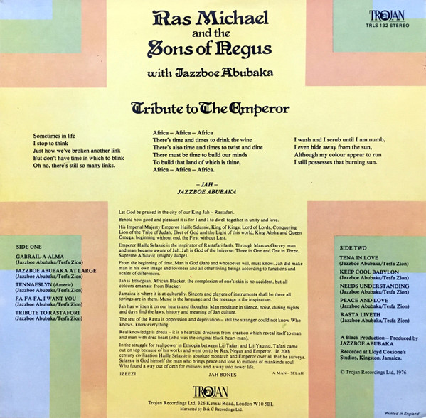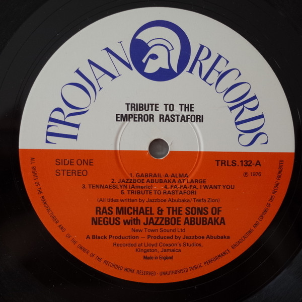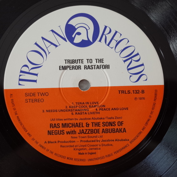 Recorded at Lloyd Coxson's Studios (Kingston, JA). Sleeve only has the title as "Tribute To The Emperor". The blue sticker on the back of the sleeve denotes "import".