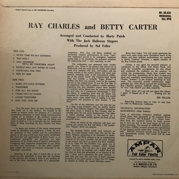 Recorded June 13, 14, 1961 in Hollywood, Ca.