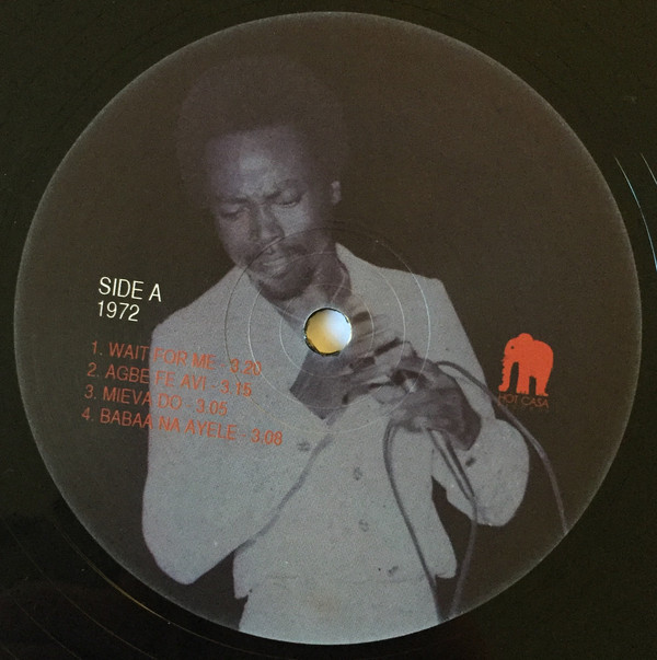 Gatefold sleeve. The song order on the record itself is other than stated on the sleeve and label: 'Babaa Na Ayele' is A2, 'Agbe Fe Avi' is A3 and 'Mieva Do' is A4.