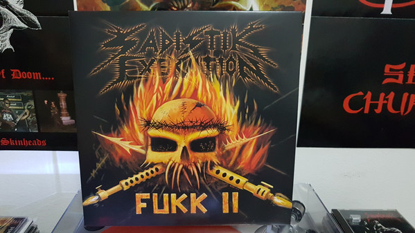 400 x orange opaque 12" (140g) in a microtene innerbag, printed innersleeve on 220g, jacket full-color on 350g, all assembled in a PVC overbag. Fukk II was recorded during September – October 2002 and January y2003 at infinity audio, Heavy Metal Sound Atakk Studios, Brighton Le Lands – Sydney – Australia. Guitar, Bass and Vocals recorded at Infinity Audio. Drums recorded at Dubbo Tip Studios, mixed and mastered by “the undertaker” in February 2003 at Infinity Audio Metal Masters Studios Melbourne – Australia Rev. Hades uses Heinkel and Marshall guitar amps. Dave Slave uses Victa bass equipment and amps. Sloth uses Yamaha and Vorkk drum equipment. Rokk drives Australian made Holden exclusively. Video-still photography : Dominic@unsoundtv. All images owned by Sadistik Exekution music and Magus Media Forever we die for death till the end. Sadistik Exekution is Fukking Death Mental