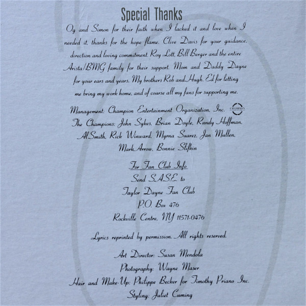 ℗ & © 1989 Arista Records, Inc., a Bertelsmann Music Group Company Gatefold cover with lyrics printed inside