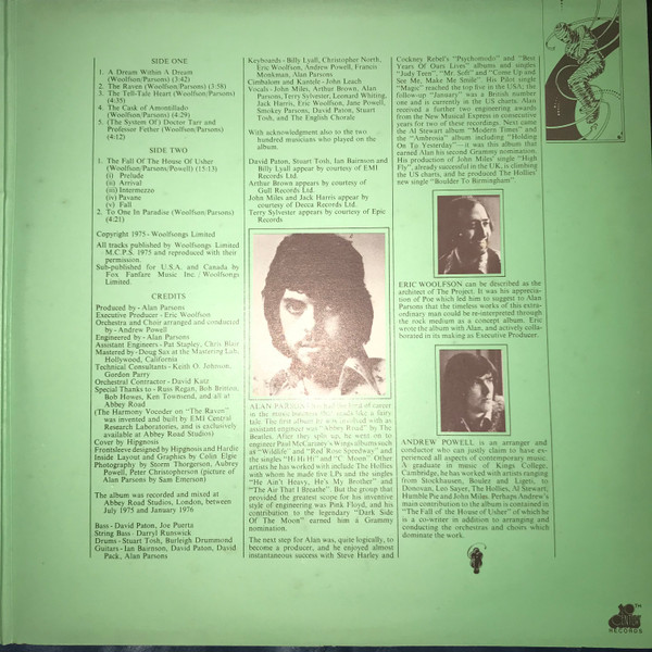 Released in a gatefold sleeve. Sleeve: Mastered at the Mastering Lab, Hollywood, California (The Harmony Vocoder on "The Raven" was invented and built by EMI Central Research Laboratories, and is exclusively available at Abbey Road Studios) The album was recorded and mixed at Abbey Road Studios, London, between July 1975 and January 1976 ℗ 1976 20th Century Records. Distributed by by Festival Records (NZ) Ltd Labels: Made in New Zealand by Festival Records (NZ) Ltd ℗ 1976 20th Century Records 20th Century Fox Record Corp., Los Angeles, California This is the original issue before the 20th Century Fox label was used in NZ