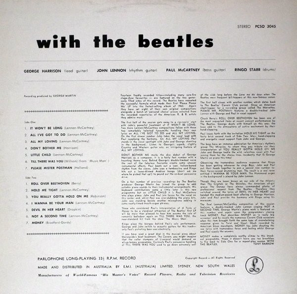 Label Template: Orange "Side Stereo" Parlophone labels. This template was in use from September 1978 but this release dates from August 1979 which was when the -4 re-cut of Side 1 came into use. Third variation (of this label template) with the following Identifying features: 1. Released in the unique Australian sleeve with incorrect spelling of "Gotta" for track B3 on rear cover. 2. Correct spelling of track B3 on label: "Got A" 3. Pressed from new lacquer cut for side 1: YEX 110-4 sourced from the UK. 4. All tracks on a single line. Other variations to use this template are the two "Columbia Misprint" variations (from the same time) and the Astor Records contract pressing released in the first six months of 1981.