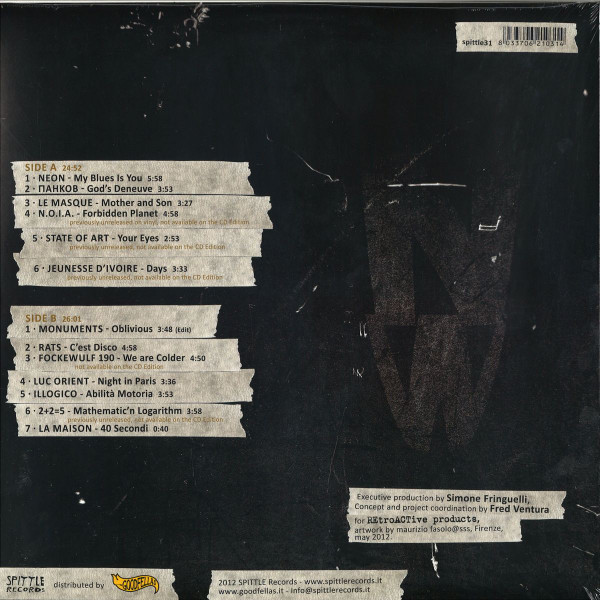 [Description] Sleeve not laminated; Picture inner sleeve with photographs and liner notes in Italian; Side lengths (A/B): 24:52 / 26:01 On spine: italia new wave [Minimal Synth, No Wave & Post Punk Sounds From The 80's Italian Underground] spittle 31 Single vinyl edition of the double CD [r3388266] containing few different tracks and one new band. [Sleeve text] 2012 Spittle Records Executive production by Simone Fringuelli, Concept and project coordination by Fred Ventura for REtroACTive products, artwork by maurizio fasolo@sss, Firenze, may 2012 [Label text] S.I.A.E. - 05/2012 [Tracklist information] A4: Previously unreleased on vinyl, not available on the CD edition A5, A6, B6: Previously unreleased, not available on the CD edition B3: Not available on CD Edition [Pressing details] Pressing ring: 32mm