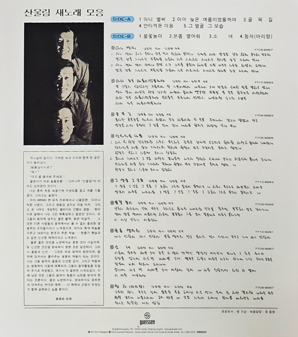 Debut album by Korean psychedelic fuzz masters and the perfect introduction to Sanullim’s unique world. Formed in the early 70s by the three Kim brothers while they were still in University, Sanullim managed to release their first album in 1977 despite censorship, misunderstanding from their record company and rudimentary recording techniques problems. Fuelled by piercing psychedelic fuzz guitars, Farfisa styled garage organ, keyboards and sweet melodies, the created a very unique sound, unheard in Korea at the time. Including some of their most iconic songs like “Already Now” and “”Likely Late Summer” (famous for its inclusion on the “Love, Peace & Poetry” series. *Original artwork in hard cardboard sleeve *Sourced from the original masters *Insert with liner notes by Hugh Dellar (Shindig!) and rare photos / memorabilia “Their debut album featured a blistering fuzz guitar sound that bleeds in and out of the mix as well as what sounds like a tinny Farfisa set behind the sweetest of pop vocal melodies, and the nine tracks stretch out into strangely hypnotic diversions. It’s easy to grasp how psych and garage heads coming to these tracks cold would find much to dig here, and also simple to see how the recordings could be mistaken for something cut many years earlier” – Hugh Dellar (Shindig!)