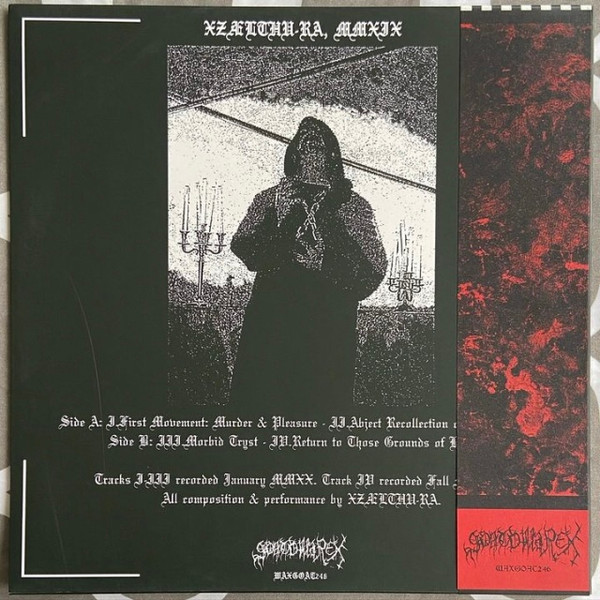 Comes with an A4 lyric sheet. The tracks are listed sequentially with Roman numerals on the jacket. Xzælthu-Ra, MMXIX. Tracks I-III recorded January MMXX. Track IV recorded Fall MMXIX.
